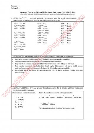 Otomata Teorisi ve Biçimsel Diller Final Soruları -2014 Paylaşan: Admin Tarih: 30-04-2015, 20:51 Gösterim: 5 641 Devamı