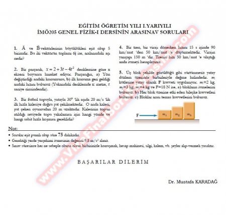 Kategori: Vize ve Final Soruları / Gazi Üniversitesi / Genel Fizik -1