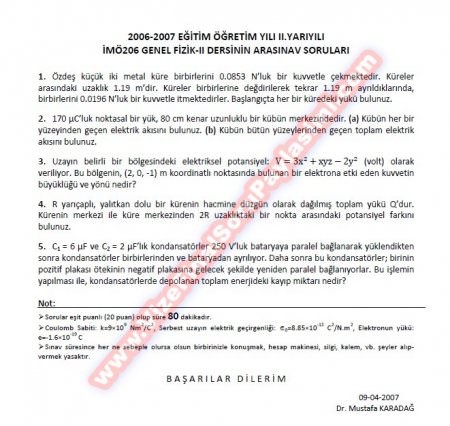 Kategori: Vize ve Final Soruları / Gazi Üniversitesi / Genel Fizik -2