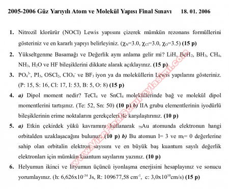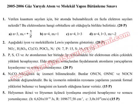 Atom ve Molekül Yapısı Final Soruları - 2006 Paylaşan: Admin Tarih: 7-06-2015, 14:29 Gösterim: 2 390 Devamı