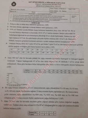 Anahtar Kelimeler: hidroloji dersi final sorulari ksu kahramanmaras sutcu imam uni universitesi mimarlik muhendislik