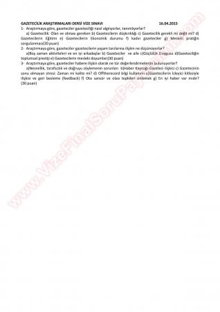 Gazetecilik Araştırmaları Final Soruları Paylaşan: must52 Tarih: 30-06-2015, 23:18 Gösterim: 5 949 Devamı