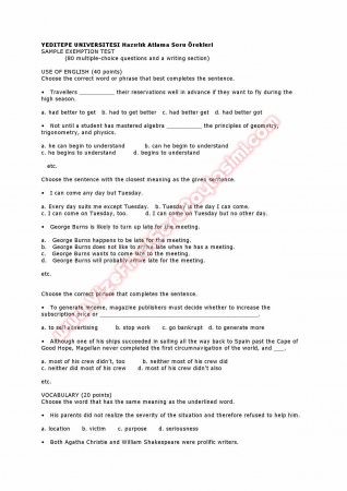 Yeditepe Üniversitesi İngilizce Muafiyet Soruları Paylaşan: must52 Tarih: 28-07-2015, 20:09 Gösterim: 6 352 Devamı