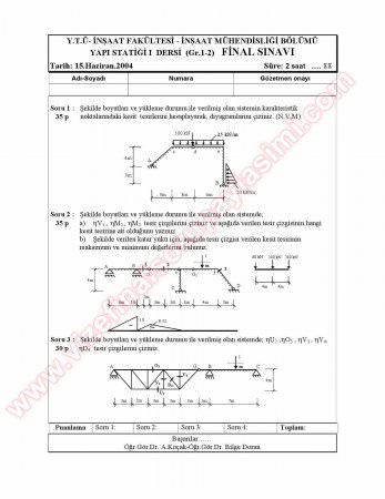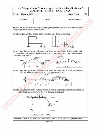 Kategori: Vize ve Final Soruları / Yıldız Teknik Üniversitesi / Yapı Statiği -1