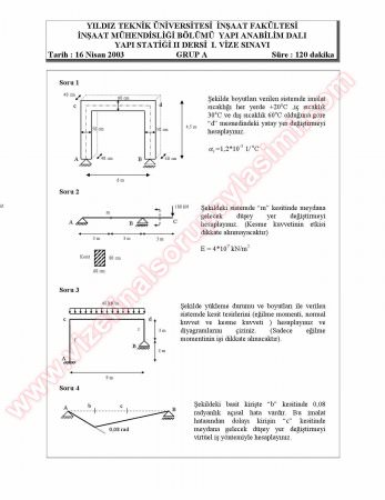 Kategori: Vize ve Final Soruları / Yıldız Teknik Üniversitesi / Yapı Statiği -2