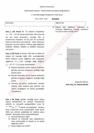 Kategori: Vize ve Final Soruları / Akdeniz Üniversitesi / Mikrodalga Tekniği Dersi