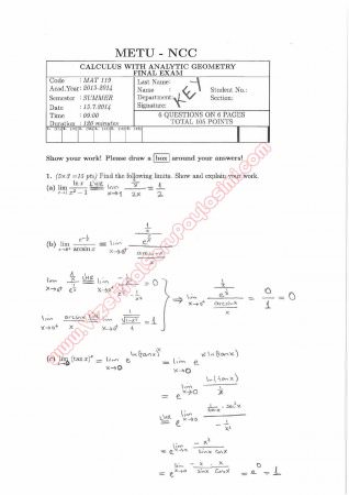 Calculus With Analytic Geometry Final Questions and Solutions Summer 2014 Paylaşan: ramazan52 Tarih: 29-10-2015, 05:04 Gösterim: 2 368 Devamı