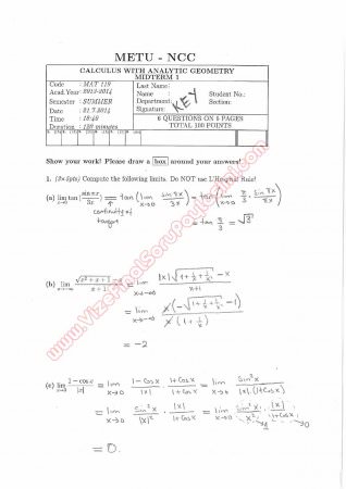 Calculus With Analytic Geometry First Midterm Questions and Solutions Summer 2014 Paylaşan: ramazan52 Tarih: 29-10-2015, 05:06 Gösterim: 2 794 Devamı