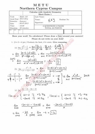 Calculus With Analytic Geometry First Short Exam Questions and Solutions Summer 2014 Paylaşan: ramazan52 Tarih: 29-10-2015, 05:07 Gösterim: 2 296 Devamı