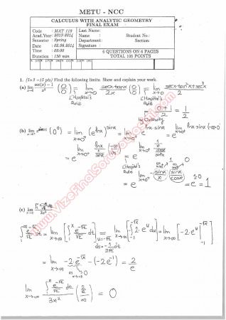 Calculus With Analytic Geometry Final Questions and Solutions Spring 2014 Paylaşan: ramazan52 Tarih: 29-10-2015, 04:58 Gösterim: 2 220 Devamı