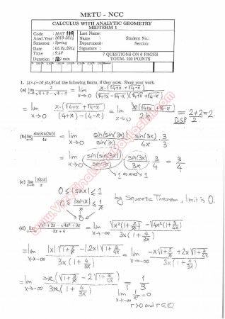 Calculus With Analytic Geometry First Midterm Questions and Solutions Spring 2014 Paylaşan: ramazan52 Tarih: 29-10-2015, 05:00 Gösterim: 1 996 Devamı
