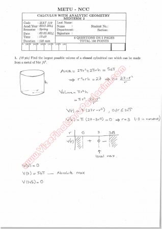 Calculus With Analytic Geometry Second Midterm Questions and Solutions Spring 2014 Paylaşan: ramazan52 Tarih: 29-10-2015, 05:02 Gösterim: 1 999 Devamı