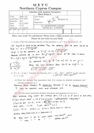 Calculus With Analytic Geometry Second Short Exam Questions and Solutions Fall 2013 Paylaşan: ramazan52 Tarih: 29-10-2015, 04:35 Gösterim: 2 623 Devamı