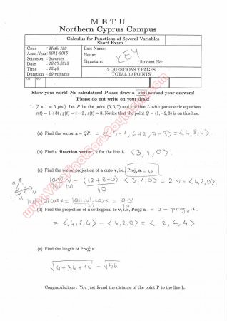 Anahtar Kelimeler: Calculus Functions Several Variables Questions Solutions Short Exam