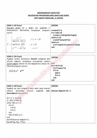 Matlab Programlama Vize Soruları ve Cevapları Paylaşan: Admin Tarih: 14-11-2015, 12:27 Gösterim: 48 724 Devamı