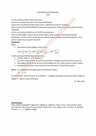 Anahtar Kelimeler: bilgisayar uygulamaları -1 mathematica programı vize soruları marmara üniversitesi