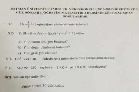 Batman Üniversitesi Vize ve Final Soruları Paylaşan: Admin Tarih: 18-01-2016, 15:16 Gösterim: 24 343 Devamı