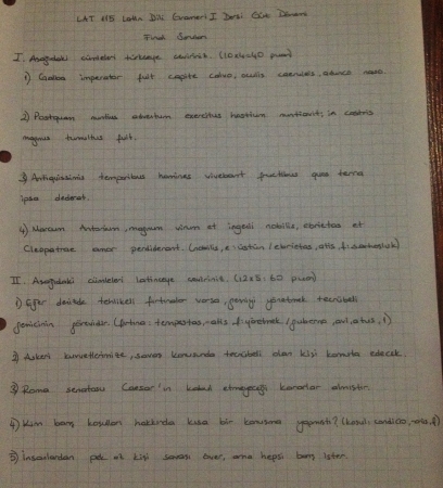 Latin Dili Grameri -1 Final Soruları - 2015 Paylaşan: Admin Tarih: 29-01-2016, 01:16 Gösterim: 4 370 Devamı