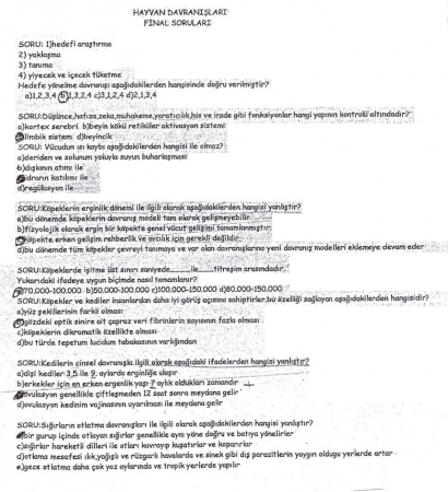 Anahtar Kelimeler: Hayvan Davranışları Dersi Final Soruları Fırat Üniversitesi Veterinerlik Fakültesi