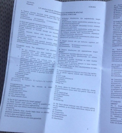 Farmakoloji Dersi Final Soruları