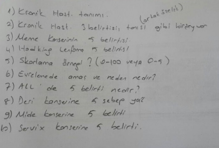 Anahtar Kelimeler: Onkoloji Hemşireliği Vize Soruları Çukurova Üniversitesi