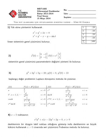 Anahtar Kelimeler: İstanbul Kültür Üniversitesi Diferansiyel Denklemler Final Soruları