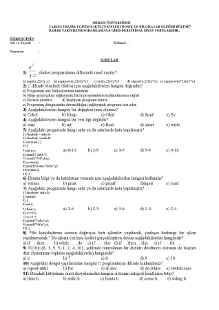 Programlamaya Giriş Dersi Final Soruları (B - Grubu) Paylaşan: Admin Tarih: 9-05-2016, 23:18 Gösterim: 24 106 Devamı