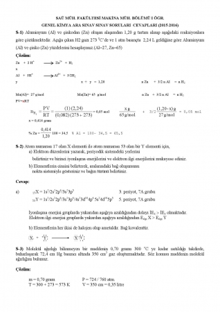 Anahtar Kelimeler: Sakarya Üniversitesi Genel Kimya Dersi vize soruları cevaplari Makine Mühendisliği