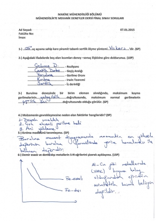 Anahtar Kelimeler: mühendislikte mekanik deneyler final soruları cevapları Erzurum Teknik Üniversitesi