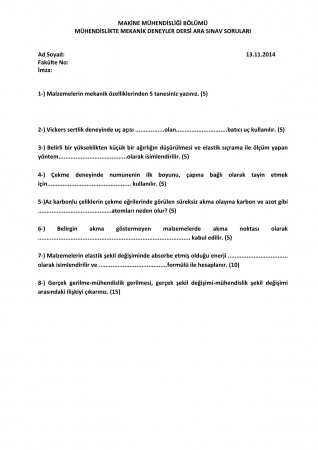 Anahtar Kelimeler: mühendislikte mekanik deneyler vize soruları Erzurum Teknik Üniversitesi
