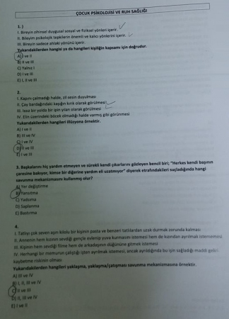 Anahtar Kelimeler: Erzurum Atatürk Üniversitesi Çocuk Psikolojisi ve Ruh Sağlığı Dersi Vize Soruları Cevapları Test Soruları
