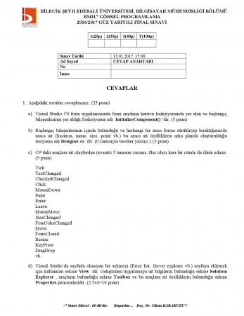 Anahtar Kelimeler: Bilecik Şeyh Edebali Üniversitesi Görsel Programlama Final Soruları cevaplari