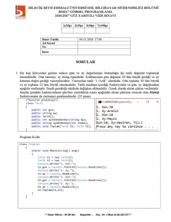 Anahtar Kelimeler: Bilecik Şeyh Edebali Üniversitesi Görsel Programlama Vize Soruları cevaplari