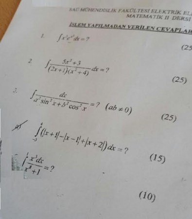 Anahtar Kelimeler: Sakarya Üniversitesi matematik-2 final soruları