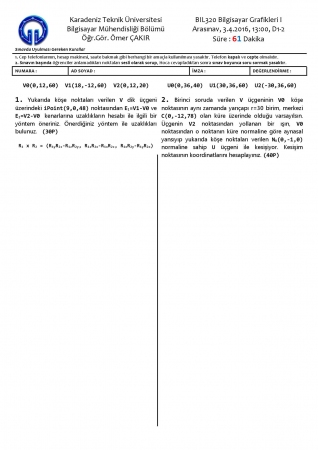 Anahtar Kelimeler: Bilgisayar Grafikleri-1 Vize Soru ve Cevapları 2016 Karadeniz Teknik Üniversitesi