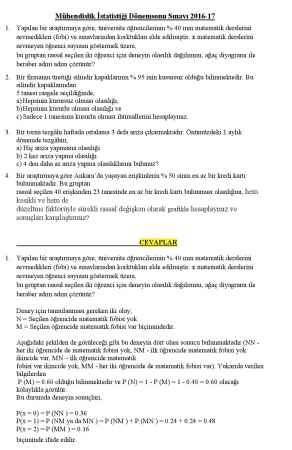 Anahtar Kelimeler: Mühendislik İstatistiği final soruları Final Soruları ve Cevapları Süleyman Demirel Üniversitesi SDÜ 2017