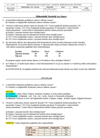 Anahtar Kelimeler: Mühendislik İstatistiği vize soruları Vize Soruları ve Cevapları Süleyman Demirel Üniversitesi SDÜ 2016