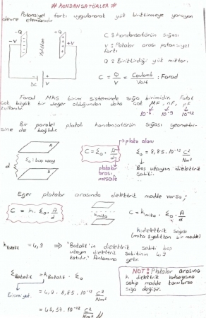 Anahtar Kelimeler: Fizik -2 Kondansatörler Ders Notları Çalışma Soruları Örnek Sorular