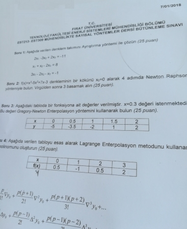 Anahtar Kelimeler: Fırat Üniversitesi mühendislikte sayısal yöntemler Bütünleme Soruları fırat üni sayısal yöntemler