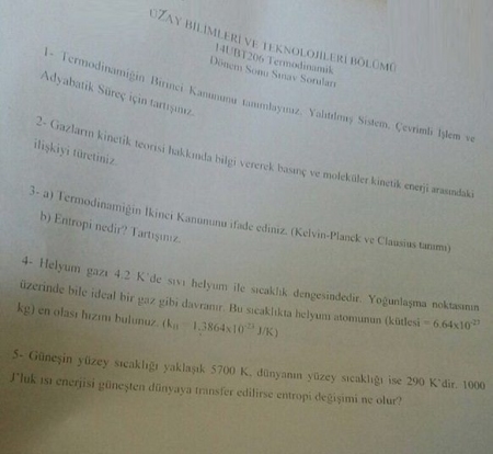 Anahtar Kelimeler: termodinamik dersi final soruları Çanakkale 18 Mart Üniversitesi comu