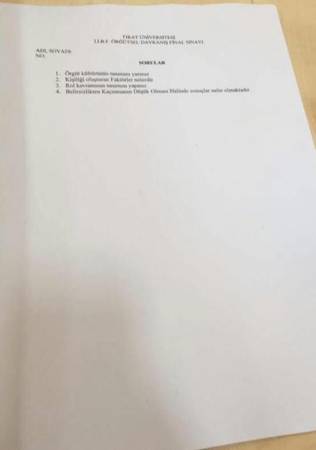 Kategori: Vize ve Final Soruları / Fırat Üniversitesi / Örgütsel Davranış