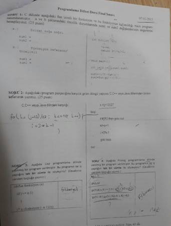 Kategori: Vize ve Final Soruları / Fırat Üniversitesi / Programlama Dilleri