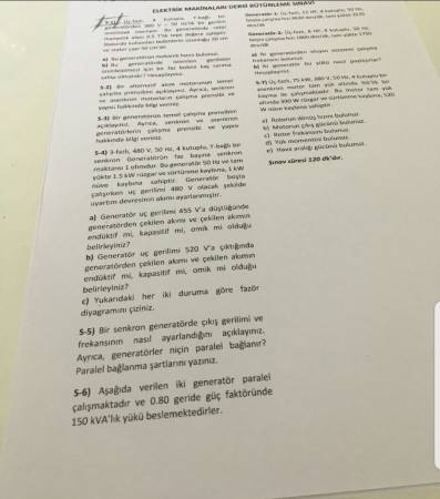 Kategori: Vize ve Final Soruları / Fırat Üniversitesi / Elektrik Makinaları -1