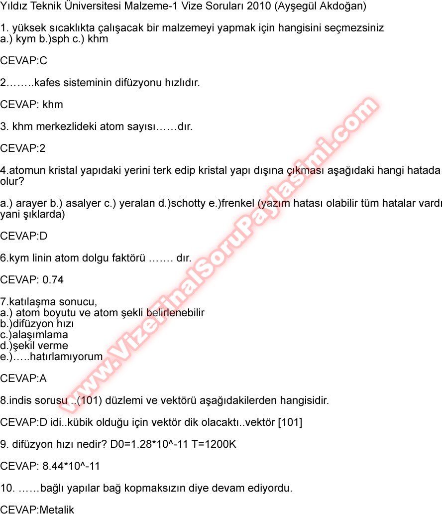 Malzeme Mekaniği -1 Vize Soruları 2010