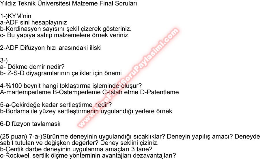 Malzeme Bilgisi Dersi Final Soruları 5-06-2014, 04:46