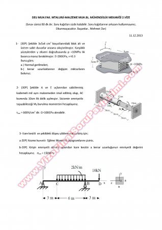 Malzeme Mekaniği -1 Vize Soruları 2010 7-04-2015, 15:10