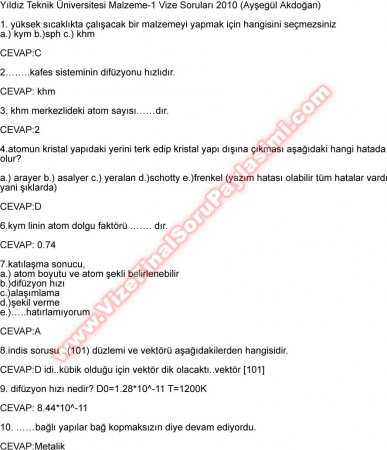 Malzeme Bilgisi Vize Soruları Ve Cevapları 6-11-2014, 20:43