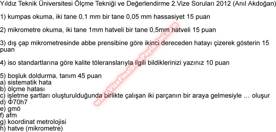 Endüstriyel Ölçme Sınav Soruları 16-07-2014, 19:58