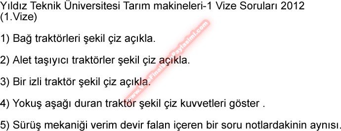 Vize ve Final Soruları / Yıldız Teknik Üniversitesi / Tarım Makinaları -1 Dersi