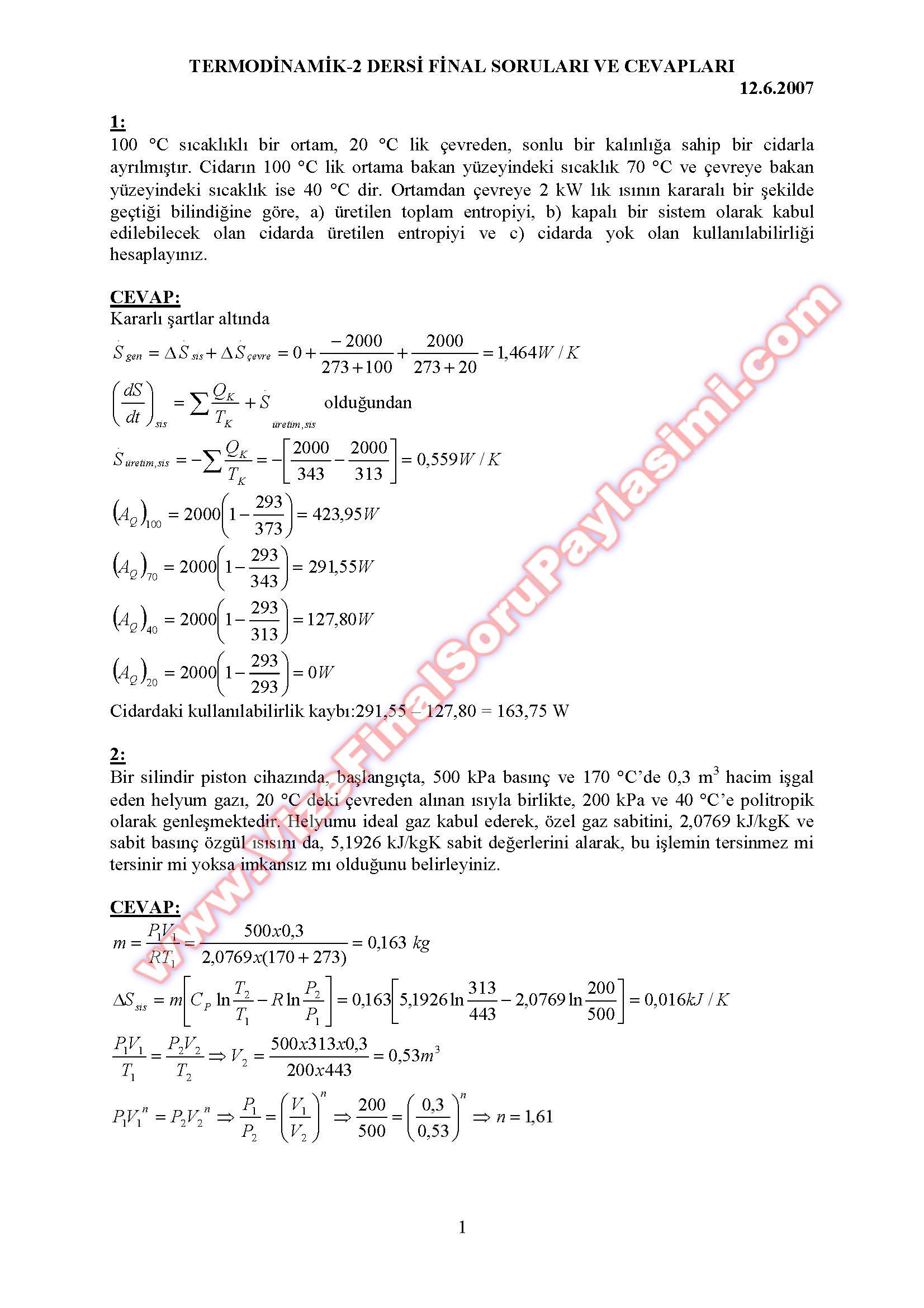 Cumhuriyet Üniversitesi Termodinamik-1 Final Soruları-2 17-07-2014, 13:43